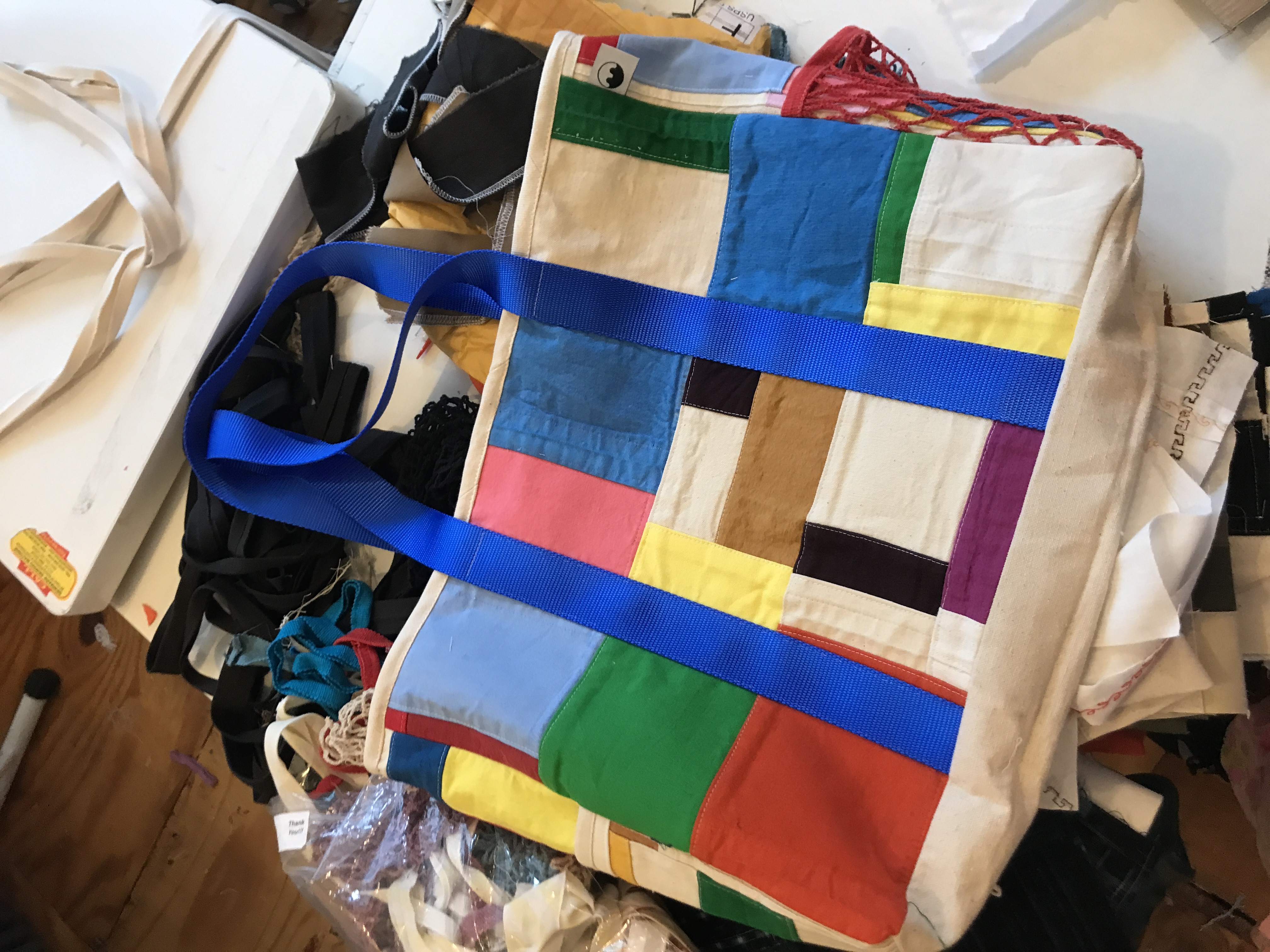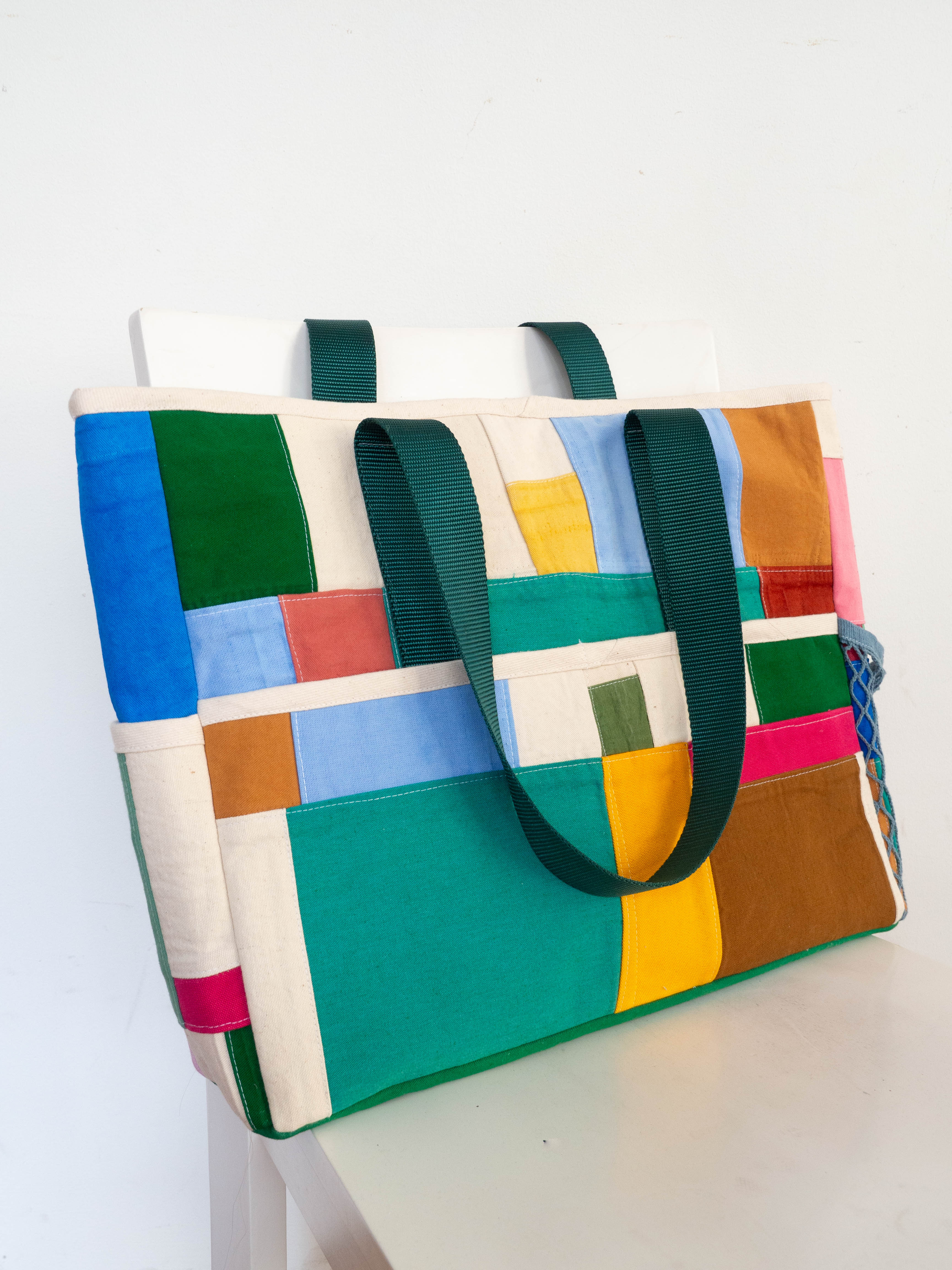 True to our brand, the Commuter Tote is a canvas for our signature patchwork. The bag's multi-panel construction was intentionally designed to showcase a variety of our upcycled textiles, making each piece a unique and colorful statement that is as practical as it is beautiful.